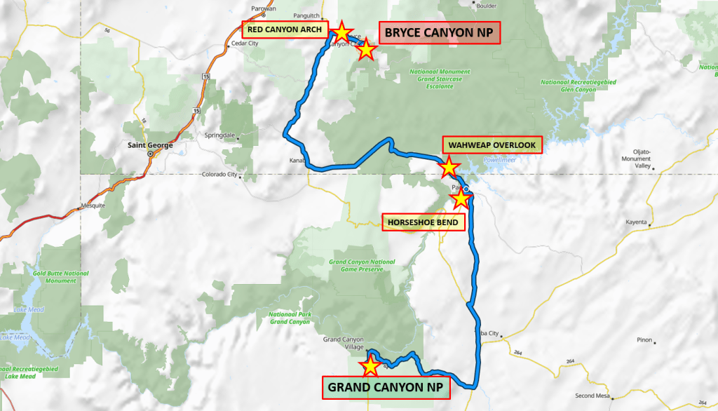 Daarna richting Page. Het eerste plan was om via Marble Canyon richting Kanab te rijden (prachtig uitzichtpunt over Colorado River), maar deze weg was afgesloten vanwege de bosbranden aan de noordkant van Grand Canyon.