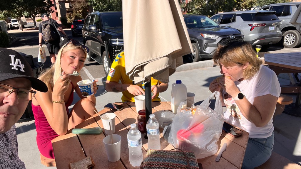 In Bryce Canyon City hebben we ingecheckt in Bryce View Lodge en hebben we gegeten bij Ruby’s Inn Cowboy’s Buffet & Steak Room. Een Michelinster gaan ze niet ontvangen, maar het was verder prima te eten.