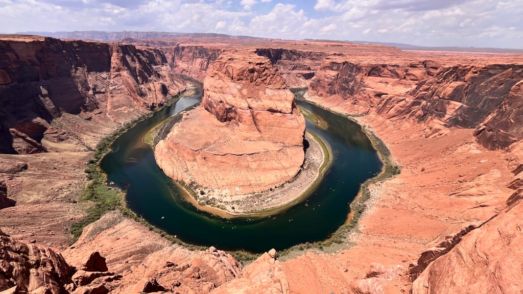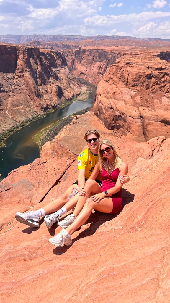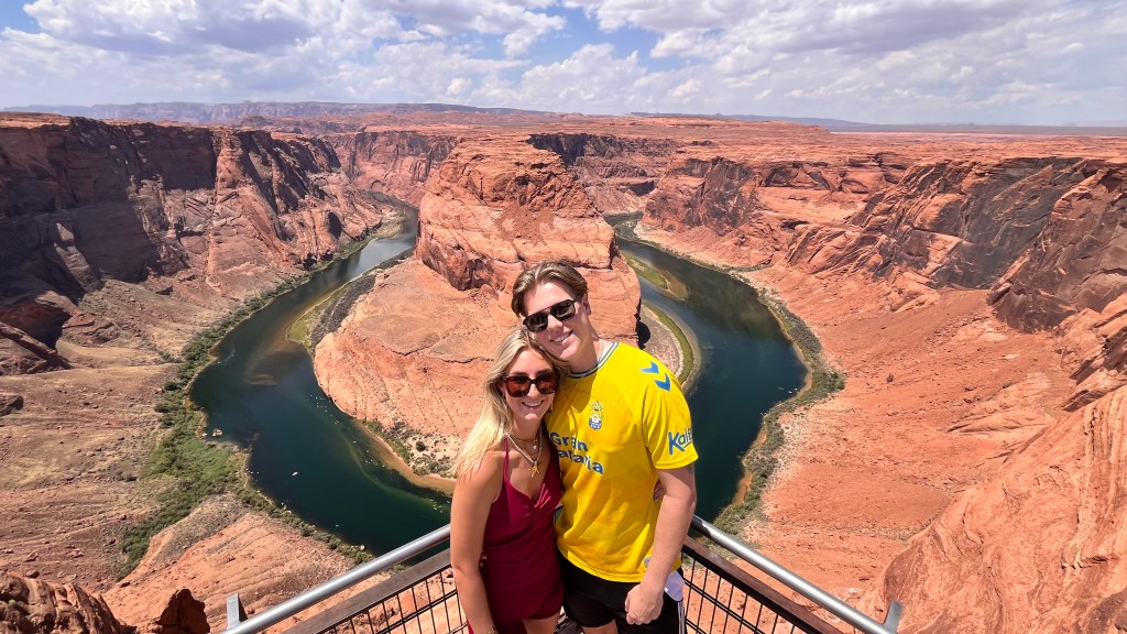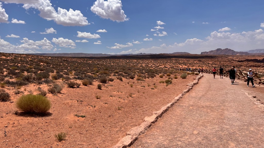 Het alternatief was zeker geen slechte. We hebben besloten om langs Horseshoe Bend te gaan. Dit is een uitzichtpunt op een bocht in de Colorado River in de vorm van een hoefijzer. De mensen halen hier de meest rare capriolen uit om maar mooie foto’s te maken en vergeten hierbij dat er weinig hekken staan en dat de afgronden vrij diep en dodelijk zijn…. Maar wat een prachtige omgeving!