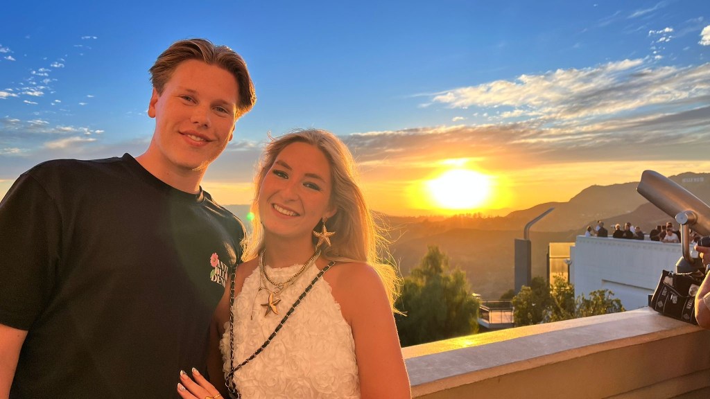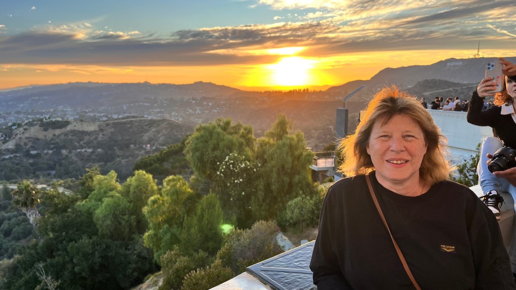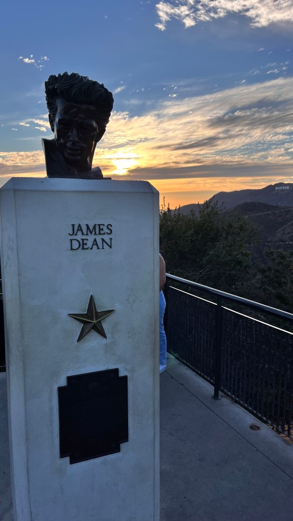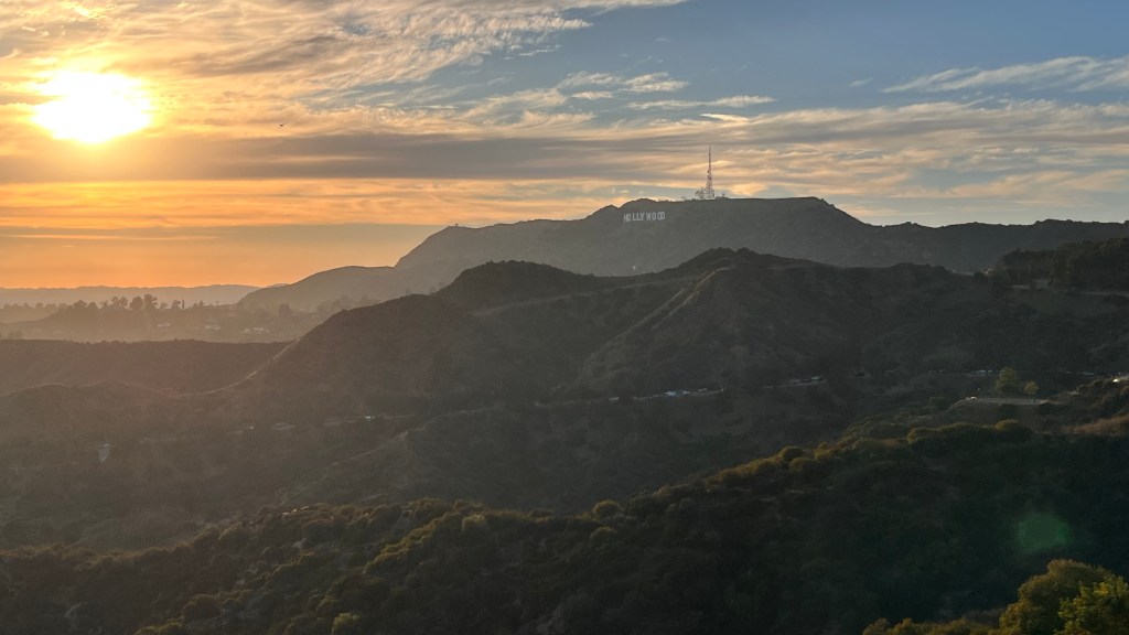 Zojuist aangekomen in ons hotel in Hollywood met uitzicht op de Hollywood letters en Griffith Observatory.