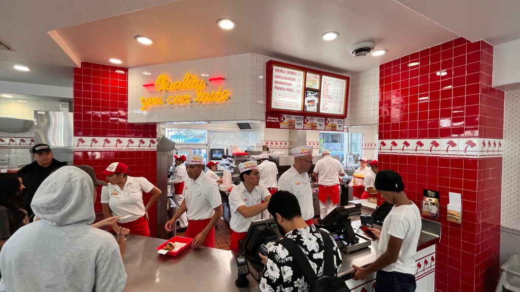Na het inchecken hebben we even een lekker drankje gedaan op het terras van een Italiaans restaurant. Daarna richting In ‘n Out Burger. Een bucketdingetje van Julia. En eerlijk is eerlijk, het was een prima burger. Geen 10, want het plakje bacon ontbrak.